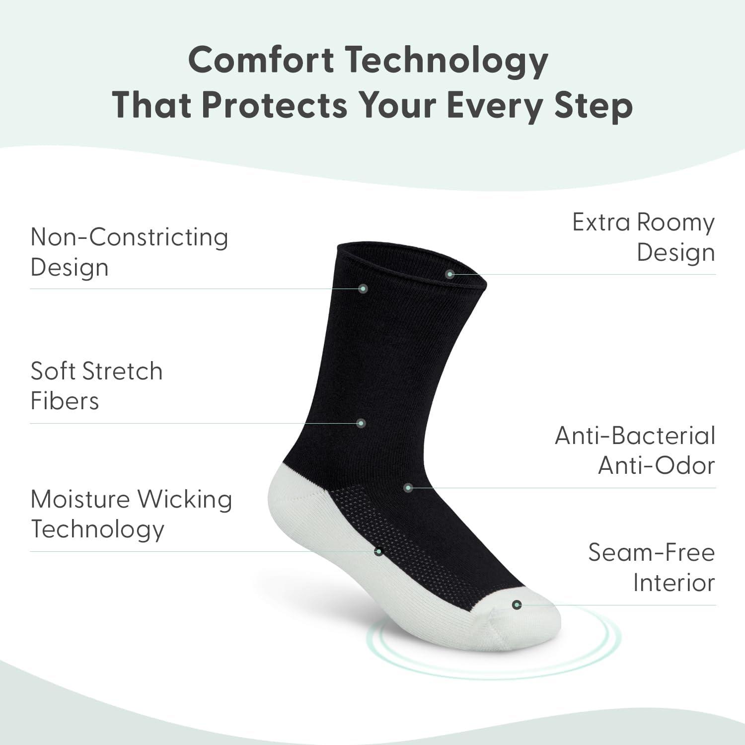 Orthofeet Extra Roomy Non-Binding Non-Constrictive Circulation Seam Free Socks, 3 Pack(Black)