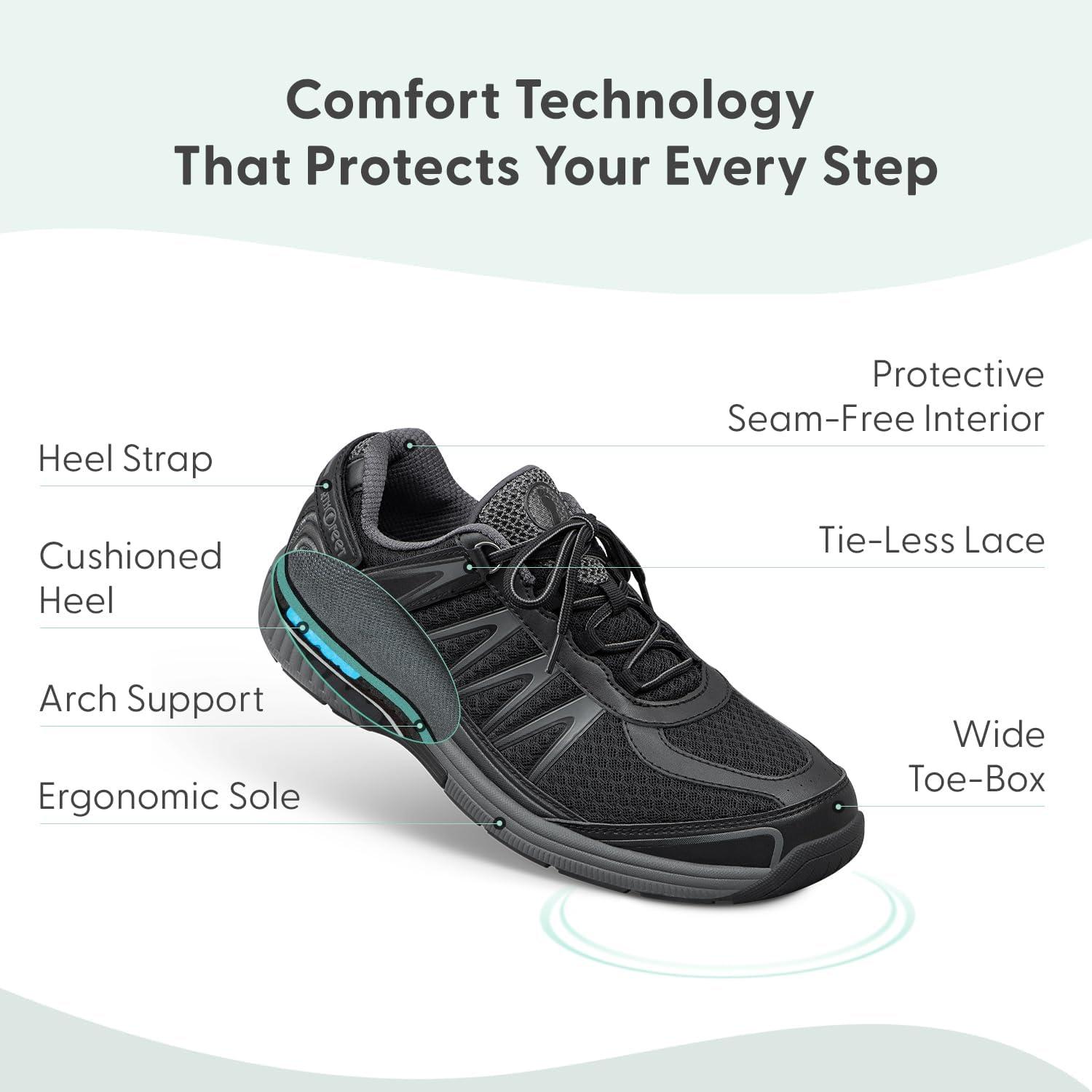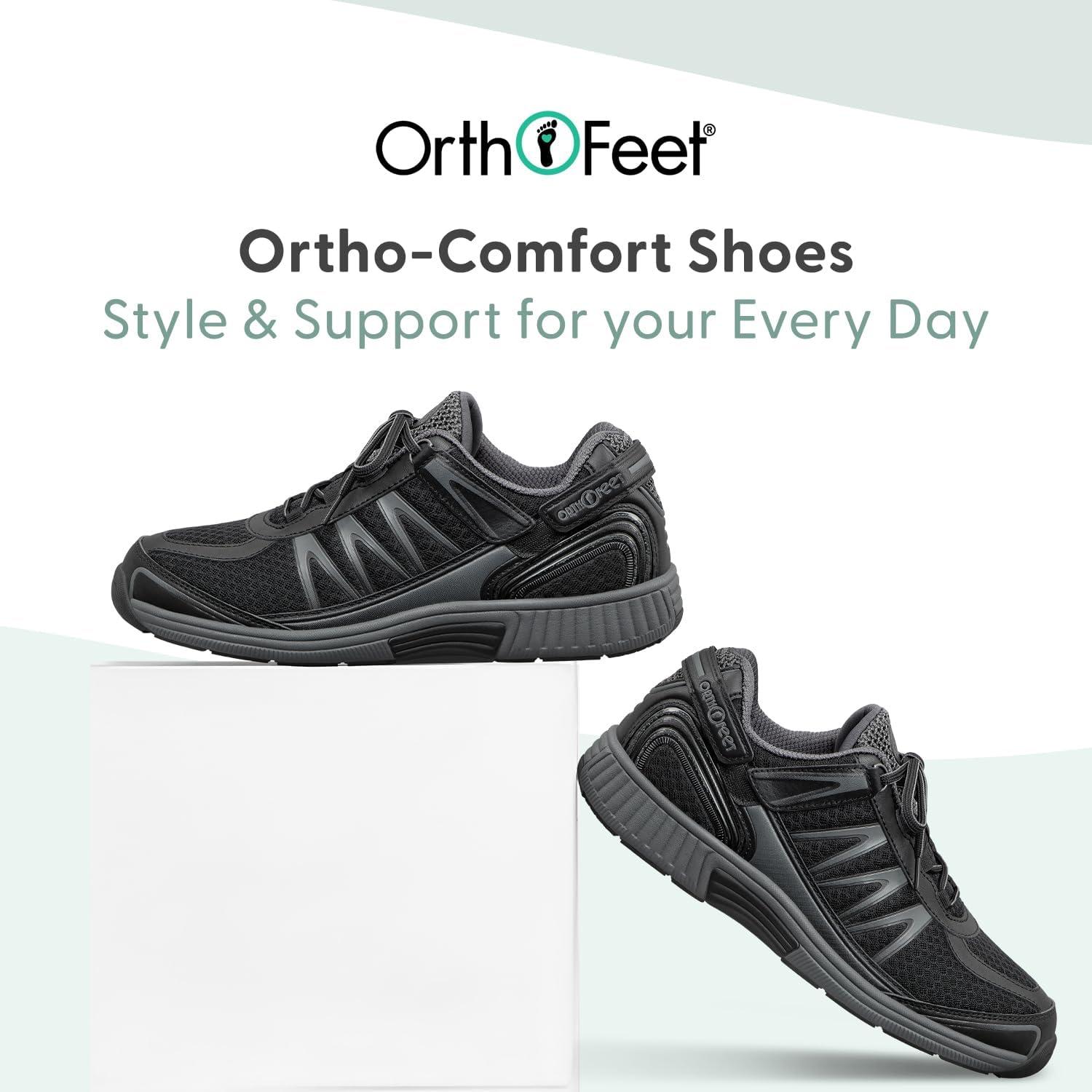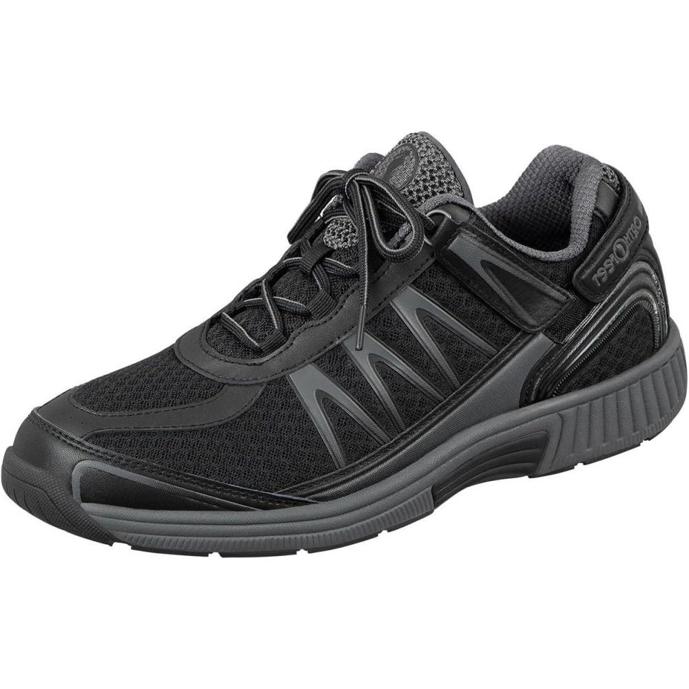 Orthofeet Men’s Orthopedic Knit Sprint Tie-Less Sneakers(Black)