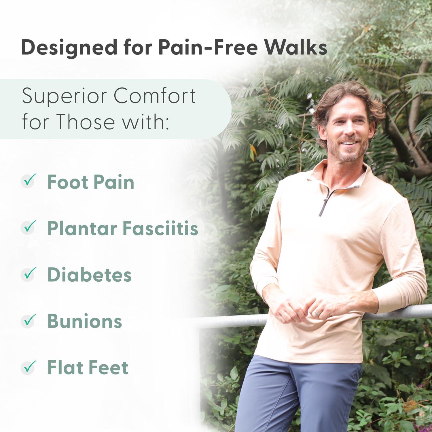 Orthofeet Pacific doctor recommended sneakers for men, featuring premium orthotic insoles with anatomical arch support and non-binding uppers that offer a relaxed fit and maximum protection against pressure points. These sneakers come with lightweight cushioning soles that soften steps and enhance stability, improving mobility for persons with flat feet, swollen feet, arthritis, diabetes, and neuropathy. Using its biomechanical expertise Orthofeet has been dedicated to designing these sneakers to provide the ultimate sneakers for plantar fasciitis for men, men’s diabetic sneakers, men’s orthotic sneakers with arch support, and men’s flat feet sneakers. The soft upper, extra depth design and roomy wide-toe box men’s sneakers help ease pressure on bunions and hammer toes, making these orthotic sneakers one of the best men’s bunion sneakers, and men’s sneakers for hammertoes, Morton’s Neuroma, and men’s swollen feet sneakers. The extended width range of Orthofeet wide-width sneakers for men offers an excellent selection of wide-diabetic sneakers for men. When looking for the best men’s sneakers with arch support Orthofeet is your brand to go to.