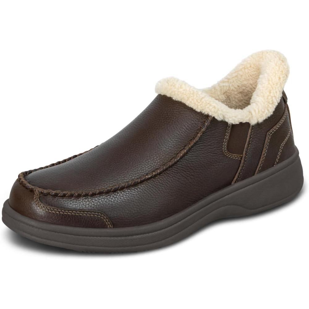 This hands-free, water-repellent, lightweight, orthopedic walking slipper provides full support and cushion all day long, while allowing extra room in the toe area, and a comfortable fit with suede leather fabric.