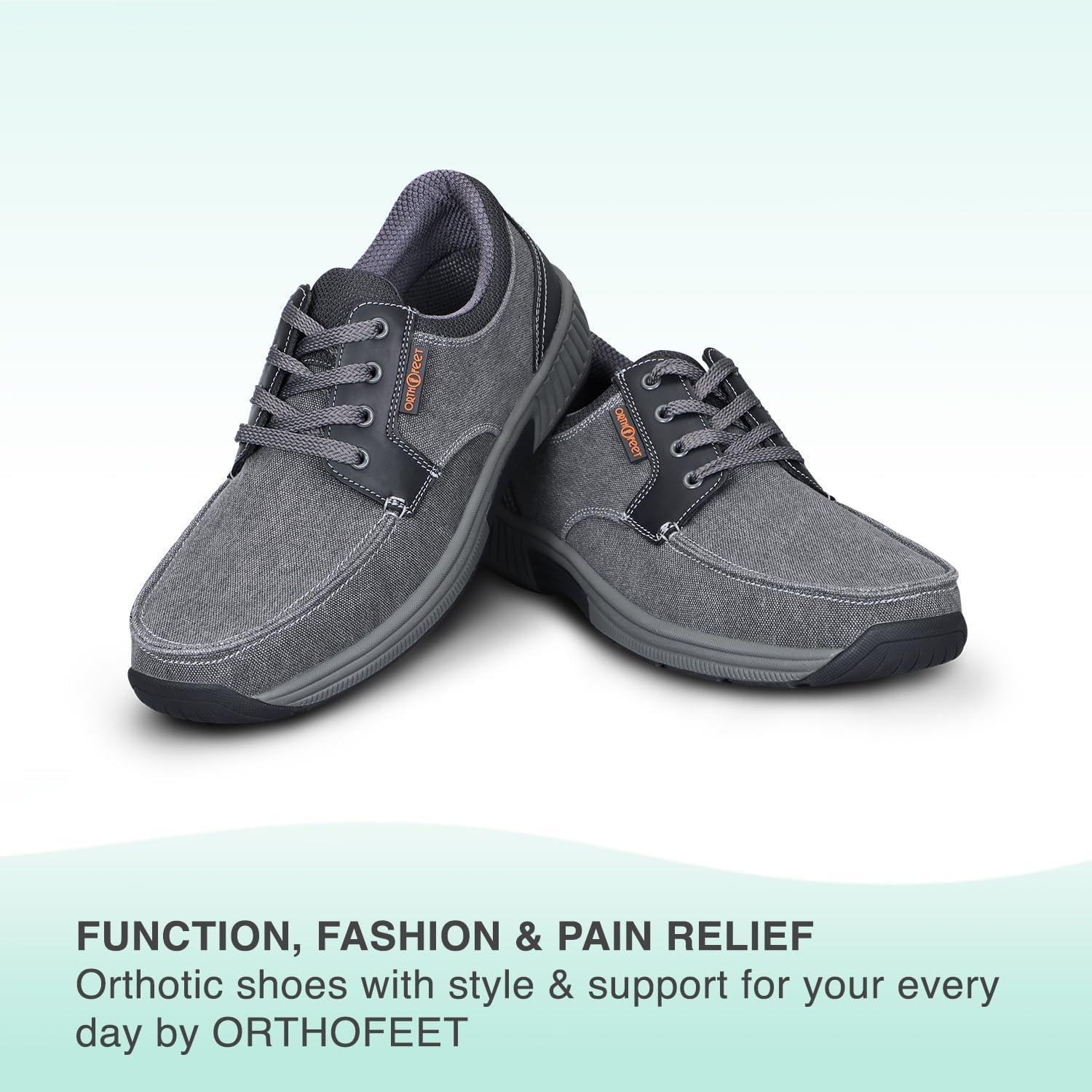 Orthofeet Men’s Orthopedic Porto Canvas Casual Shoes(Grey)