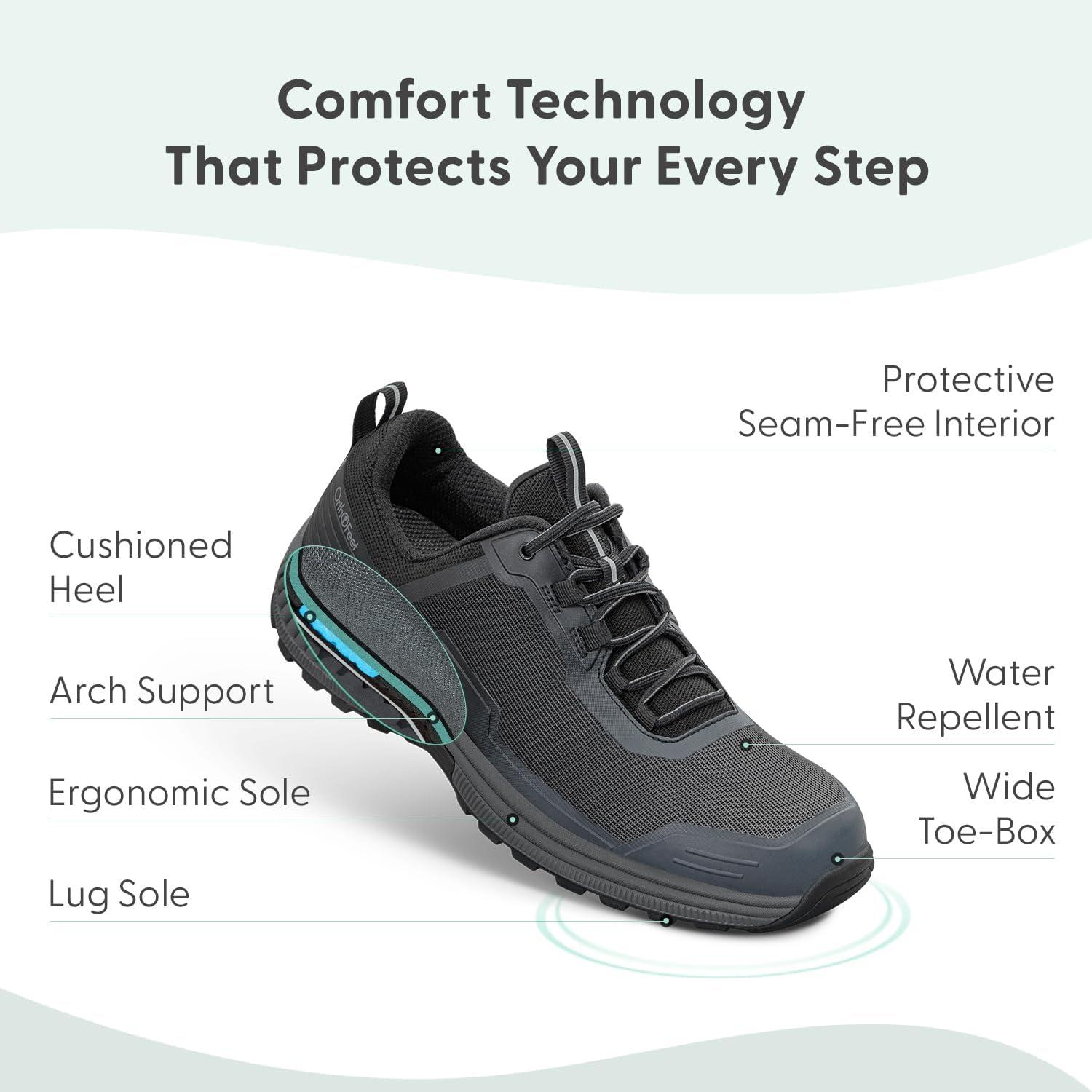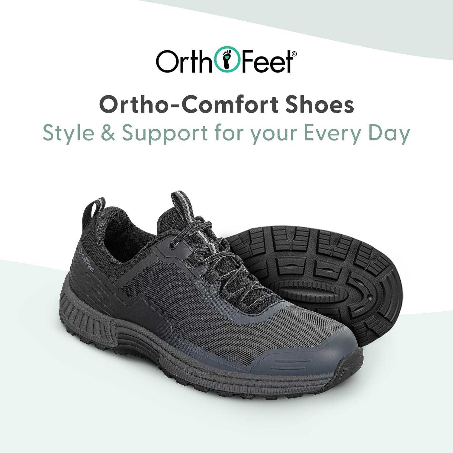 This lightweight, outdoor, orthopedic hiking shoe provides full support and cushion all day long, while allowing extra room in the toe area, and a comfortable fit.