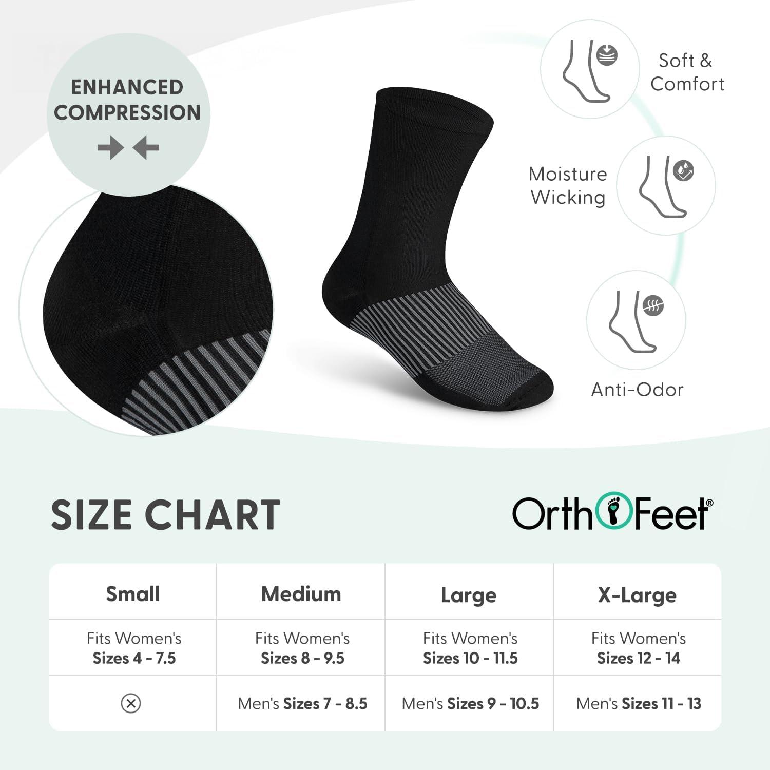 Orthofeet Mid-Calf Compression Sock – 18-25 mmHg – Ideal Support for Medical Needs, Nurses, Pregnancy, and Travel(Black)