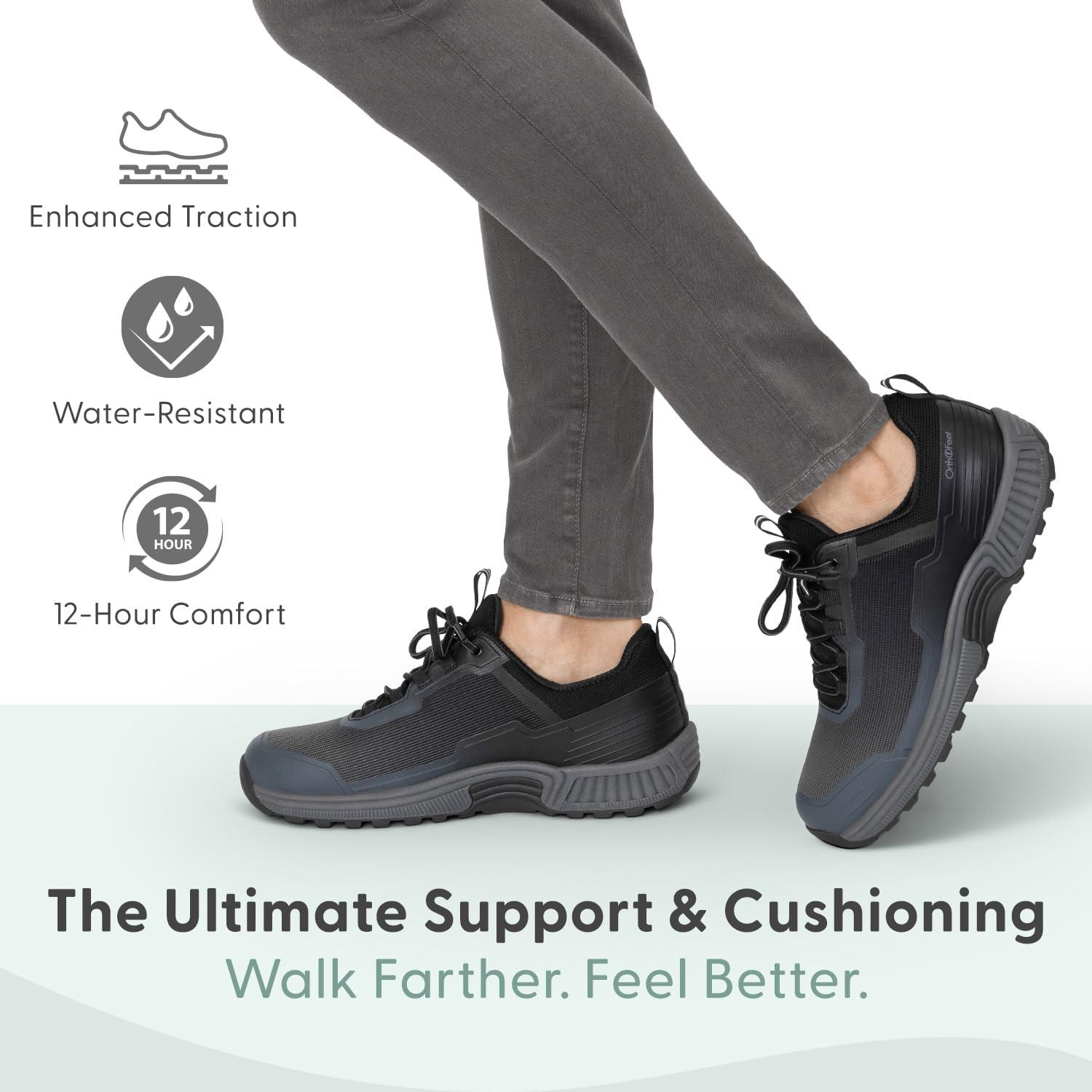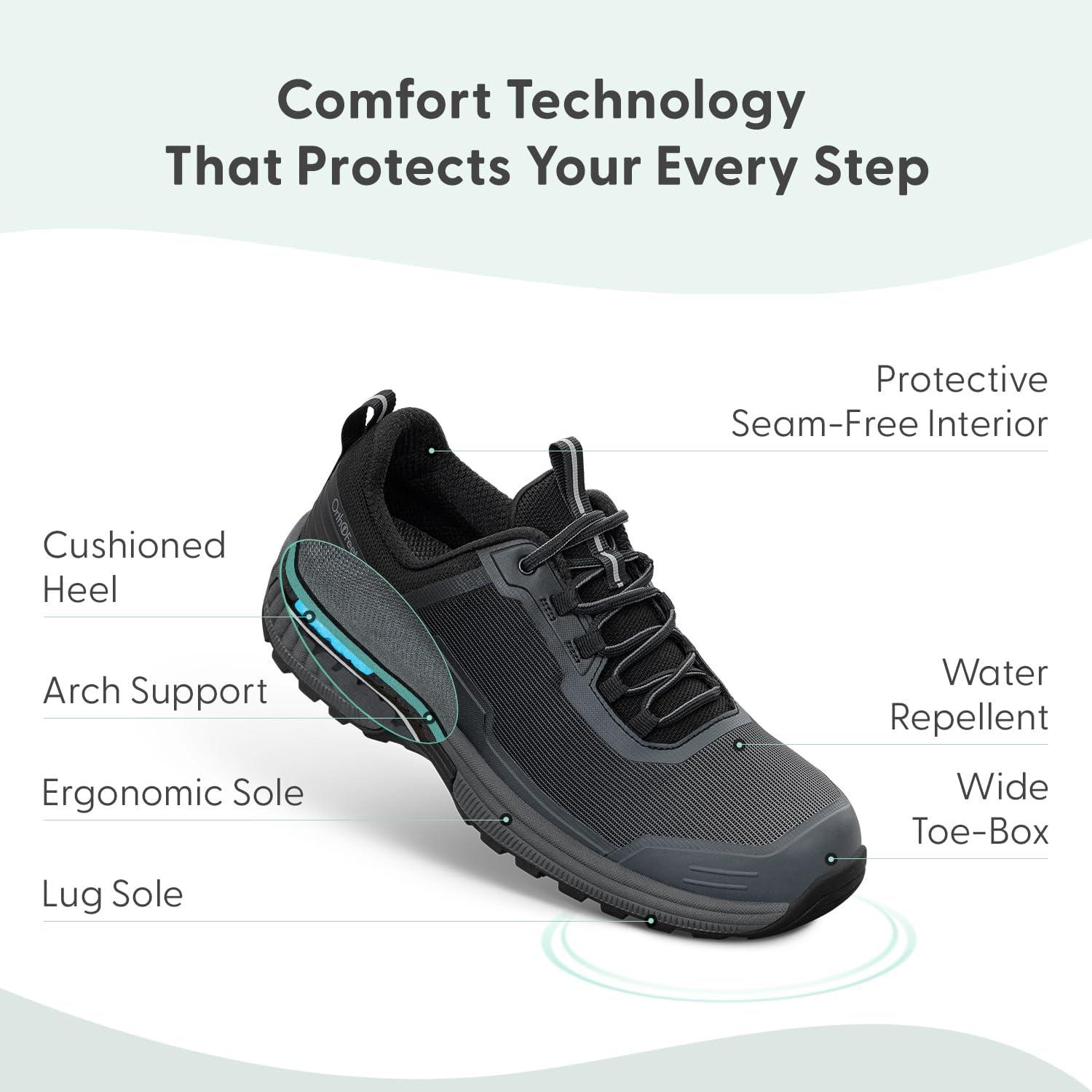 This lightweight, outdoor, orthopedic hiking shoe provides full support and cushion all day long, while allowing extra room in the toe area, and a comfortable fit.