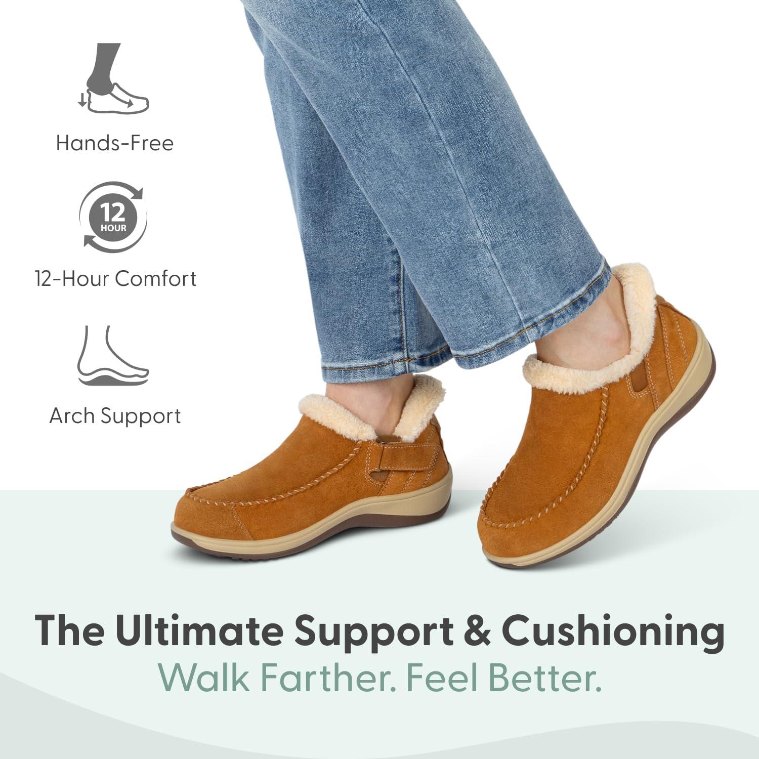 Orthofeet doctor recommended boot for women, featuring premium orthotic insoles with anatomical arch support and non-binding uppers that offer a relaxed fit and maximum protection against pressure points. These shoes come with lightweight cushioning soles that soften steps and enhance stability, improving mobility for persons with flat feet, swollen feet, arthritis, diabetes, and neuropathy. Using its biomechanical expertise Orthofeet has been dedicated to designing these shoes to provide the ultimate footwear for plantar fasciitis for women, women’s diabetic shoes, women’s orthotic shoes with arch support, and women’s flat feet shoes. The soft upper, extra depth design and roomy wide-toe box women’s shoes help ease pressure on bunions and hammer toes, making these orthotic boots one of the best women’s bunion shoes, and women’s shoes for hammertoes, Morton’s Neuroma, and women’s swollen feet shoes. The extended range of Orthofeet wide-width shoes for women offers an excellent selection of wide-diabetic shoes. When looking for the best women’s shoes with arch support Orthofeet is your brand to go to.swollen feet, arthritis, diabetes, and neuropathy. Using its biomechanical expertise Orthofeet has been dedicated to designing these shoes to provide the ultimate footwear for plantar fasciitis for women, women’s diabetic shoes, women’s orthotic shoes with arch support, and women’s flat feet shoes. The soft upper, extra depth design and roomy wide-toe box women’s shoes help ease pressure on bunions and hammer toes, making these orthotic boots one of the best women’s bunion shoes, and women’s shoes for hammertoes, Morton’s Neuroma, and women’s swollen feet shoes. The extended range of Orthofeet wide-width shoes for women offers an excellent selection of wide-diabetic shoes. When looking for the best women’s shoes with arch support Orthofeet is your brand to go to.