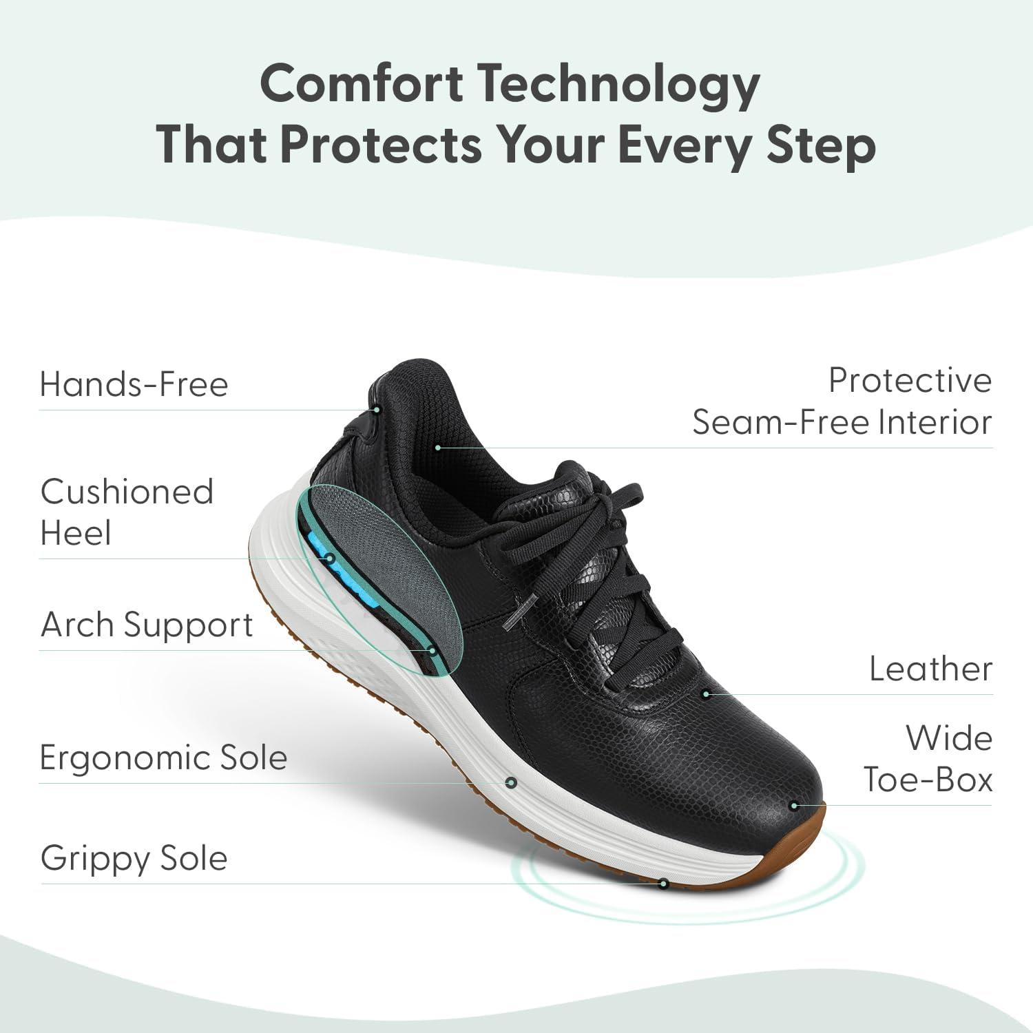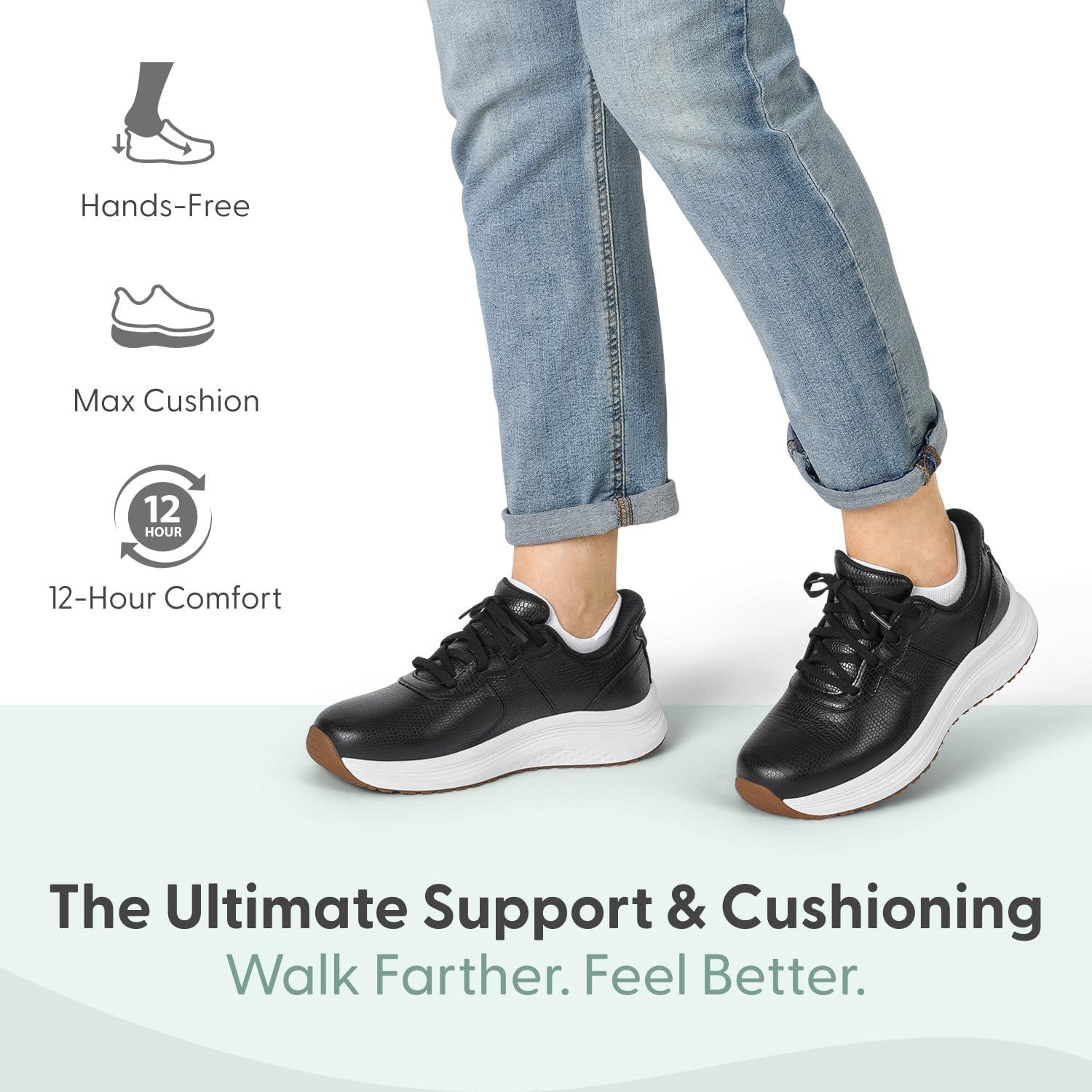 Orthofeet Women’s Orthopedic Leather Stride Hands-Free Sneakers(Black)