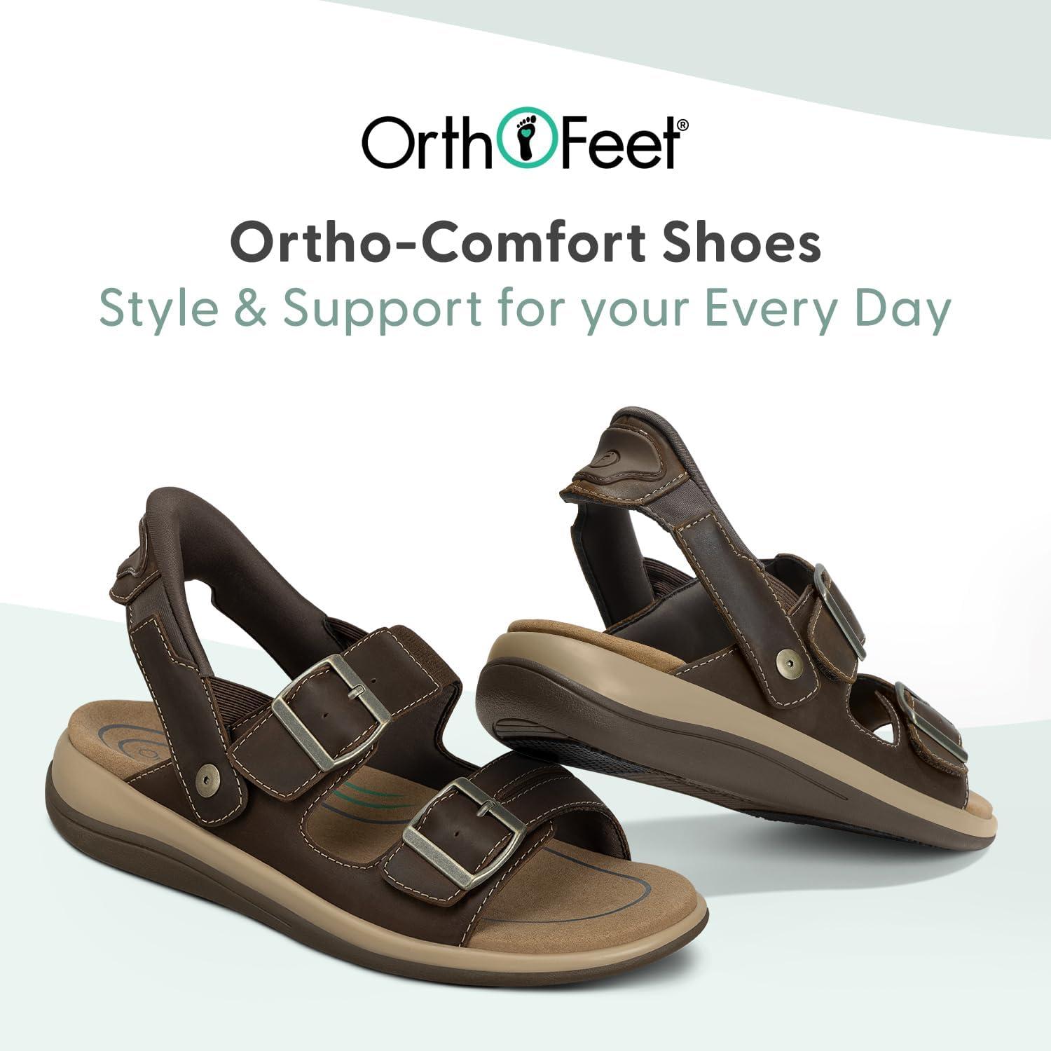 Orthofeet Women's Orthopedic Minerva Hands-Free Sandals with Adjustable Straps(Brown)