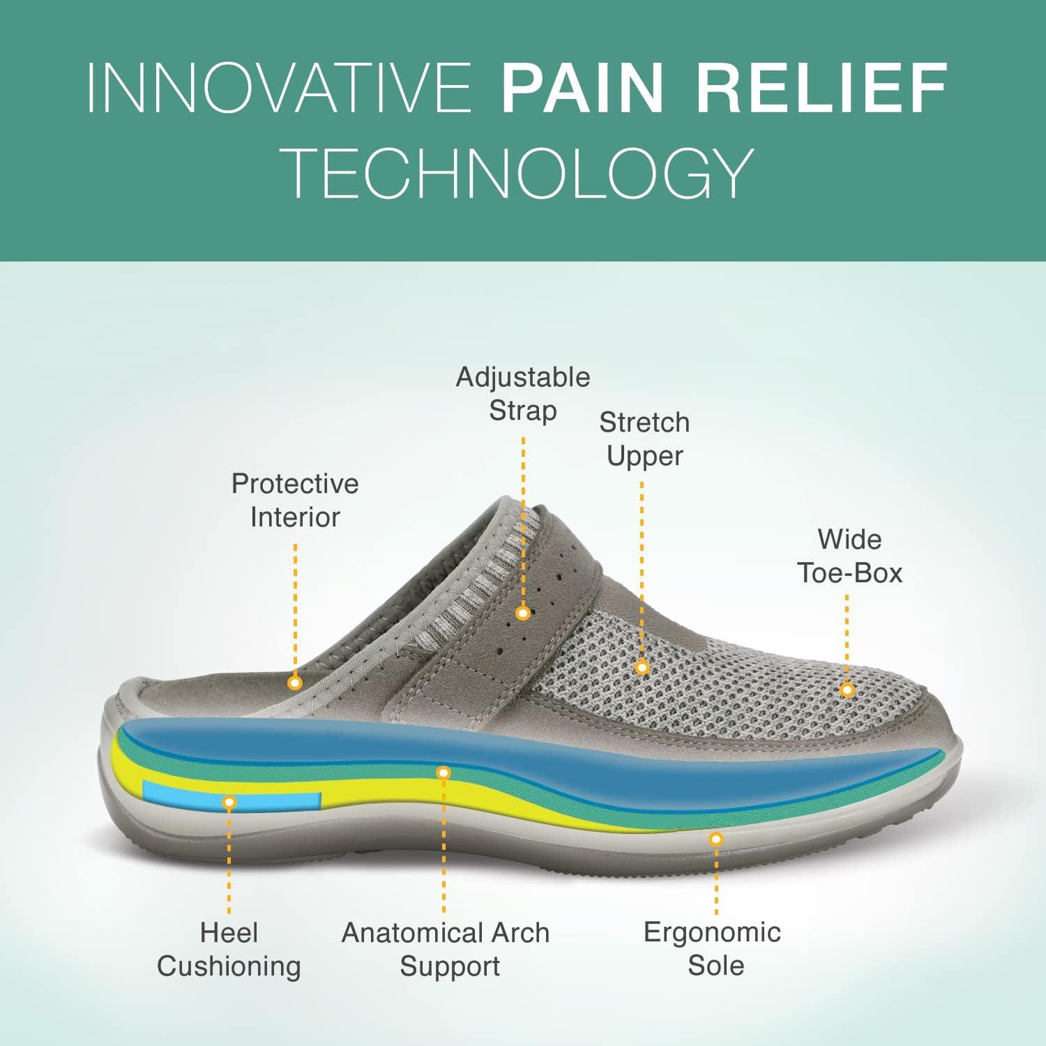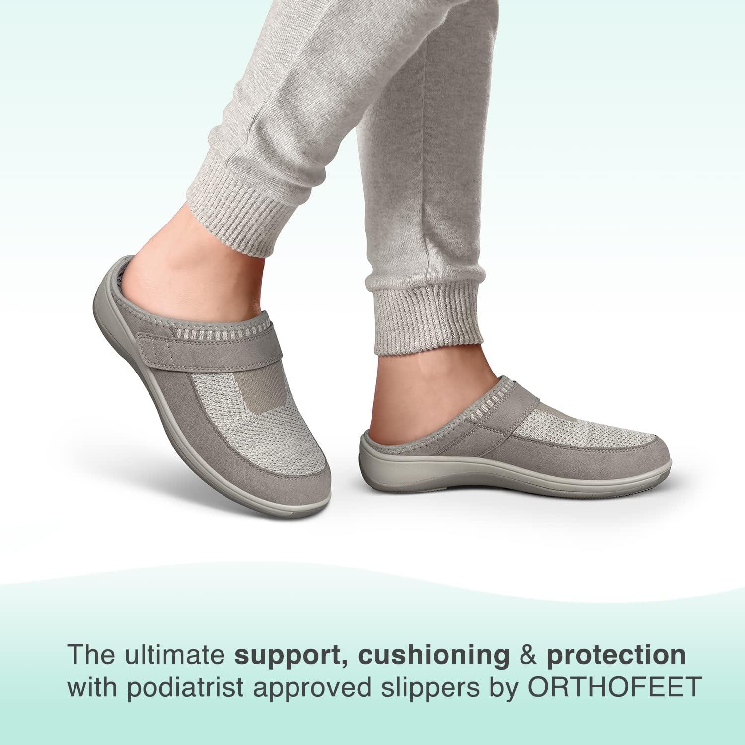 Orthofeet doctor recommended slippers for women, featuring premium orthotic insoles with anatomical arch support and non-binding uppers that offer a relaxed fit and maximum protection against pressure points. These slippers come with lightweight cushioning soles that soften steps and enhance stability, improving mobility for persons with flat feet, swollen feet, arthritis, diabetes, and neuropathy. Using its biomechanical expertise Orthofeet has been dedicated to designing these sneakers to provide the ultimate slippers for plantar fasciitis for women, women’s diabetic slippers, women’s orthotic slippers with arch support, and women’s flat feet slippers. The soft upper, extra depth design and roomy wide-toe box women’s slippers help ease pressure on bunions and hammer toes, making these orthotic slippers one of the best women’s bunion slippers, and women’s slippers for hammertoes, Morton’s Neuroma, and women’s slippers for swollen feet. The extended width range of Orthofeet wide-width slippers for women offers an excellent selection of wide-diabetic slippers for women. When looking for the best women’s slippers with arch support Orthofeet is your brand to go to.