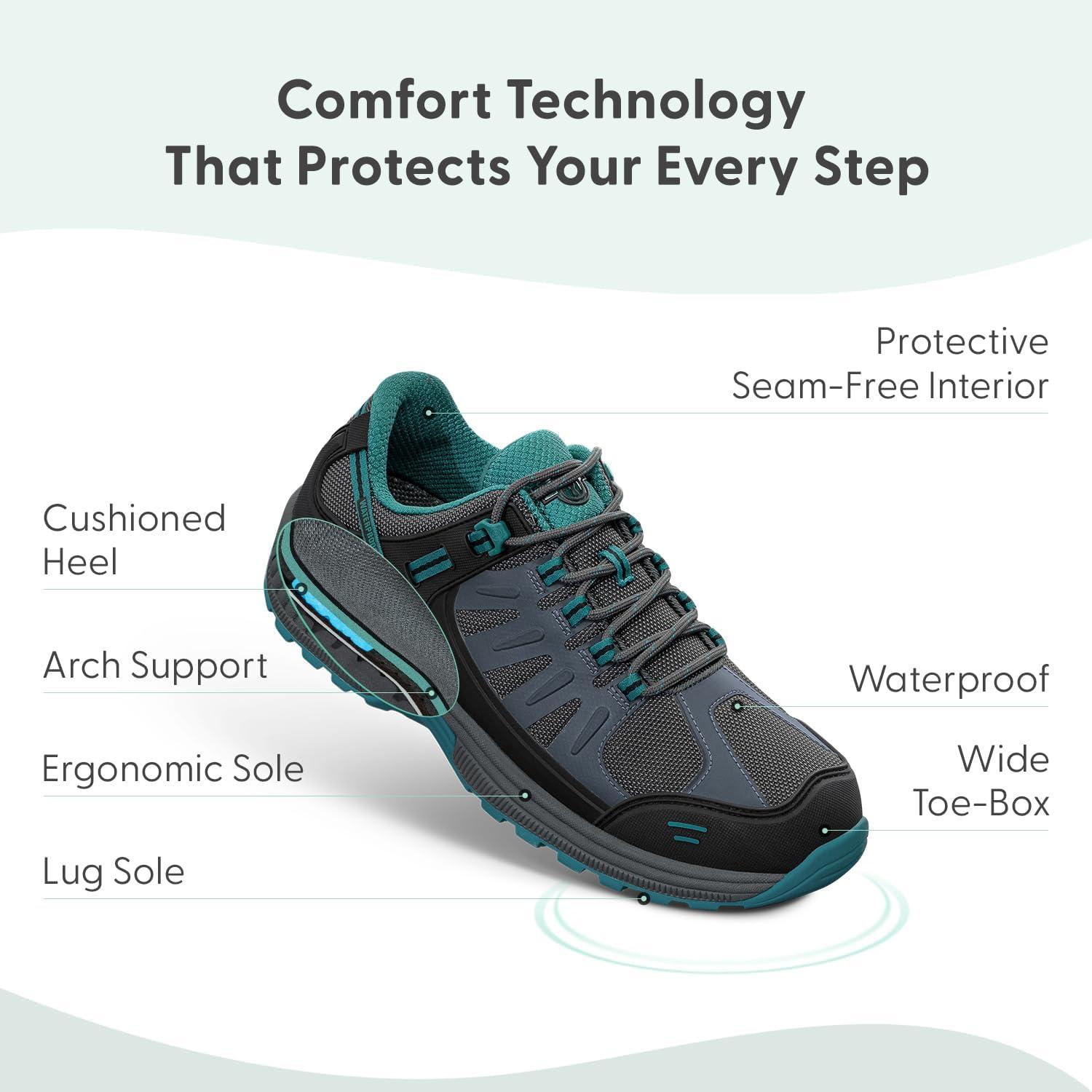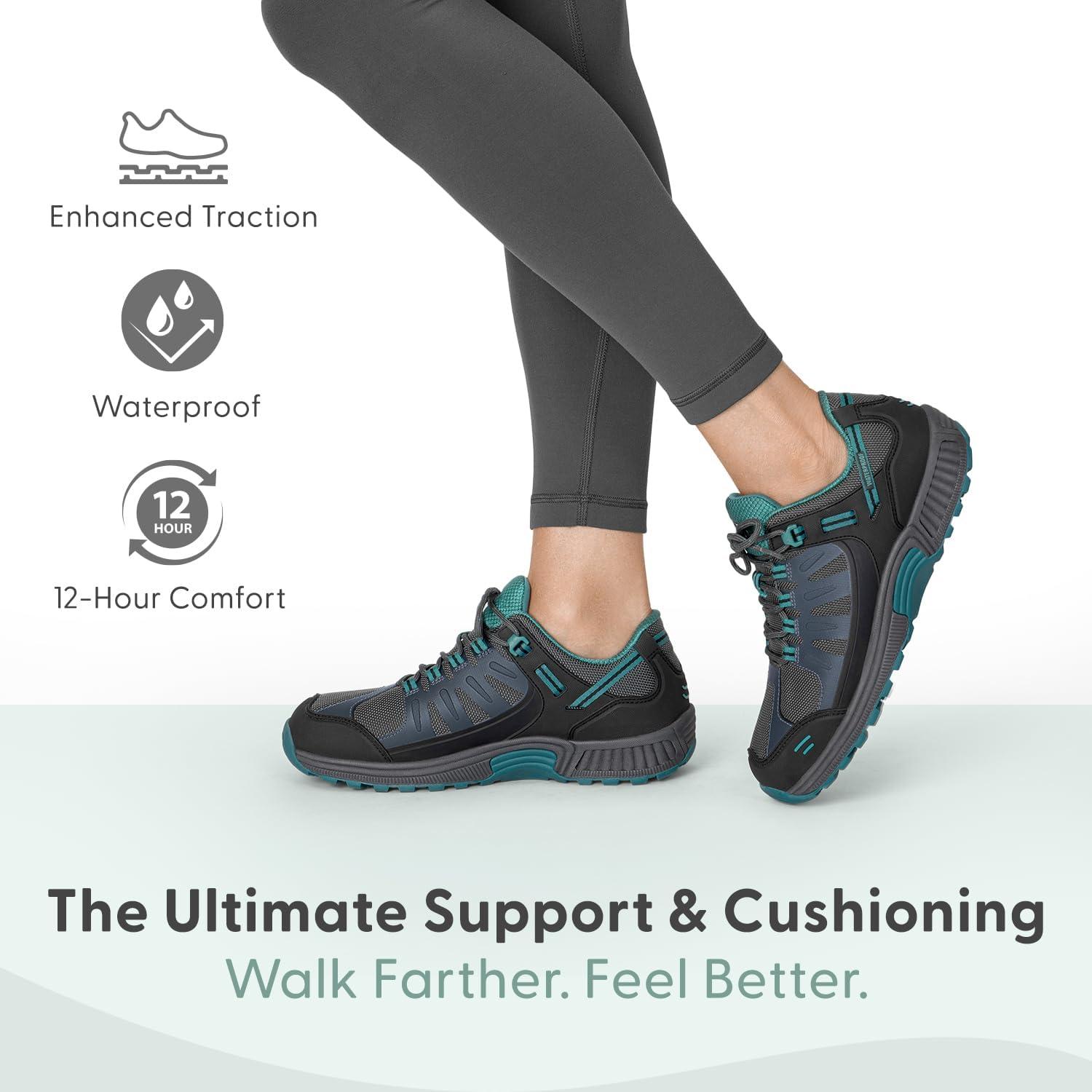 This lightweight, outdoor, orthopedic hiking shoe provides full support and cushion all day long, while allowing extra room in the toe area, and a comfortable fit.