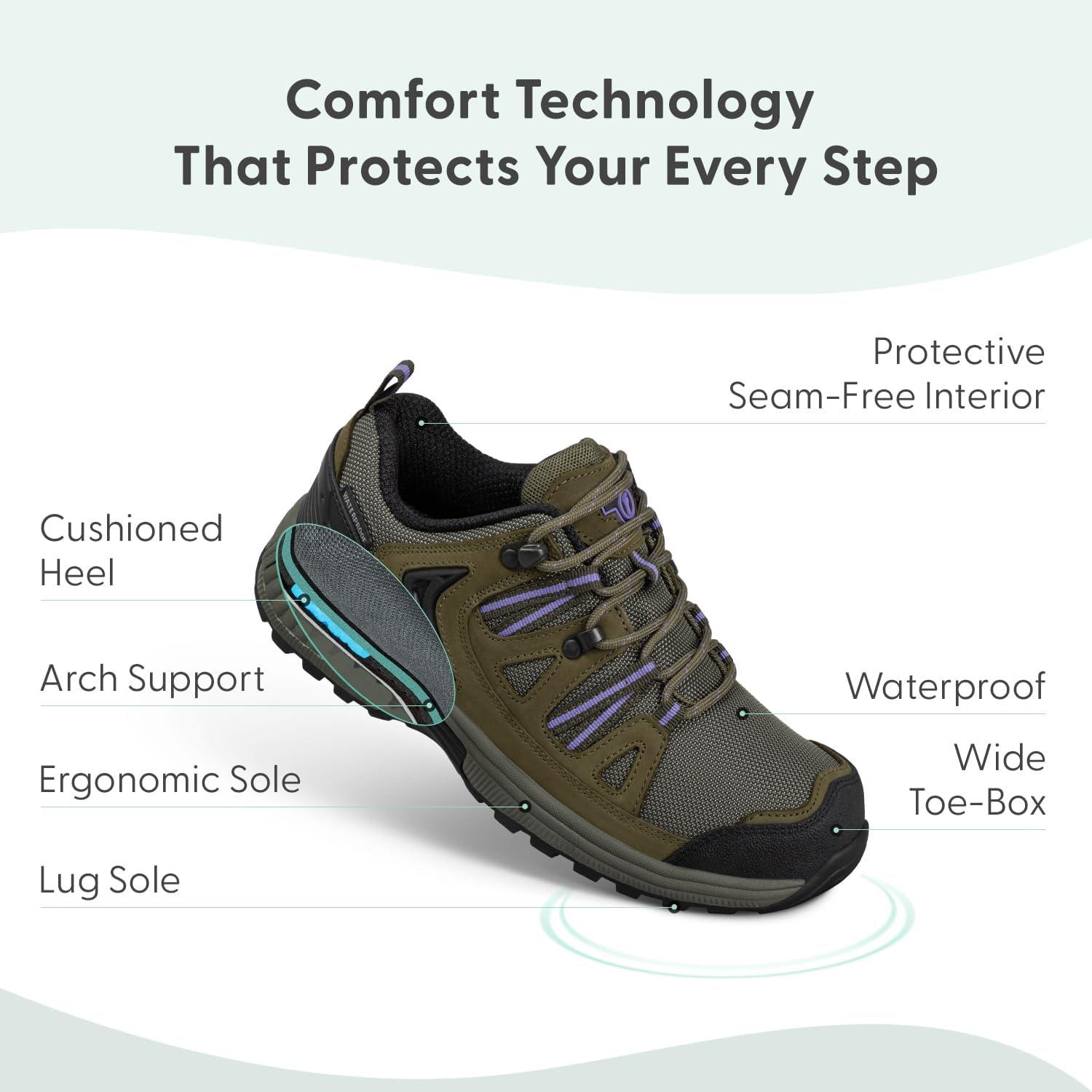 This lightweight, waterproof outdoor, orthopedic shoe provides full support and cushion all day long with adjustable fit and comfort.