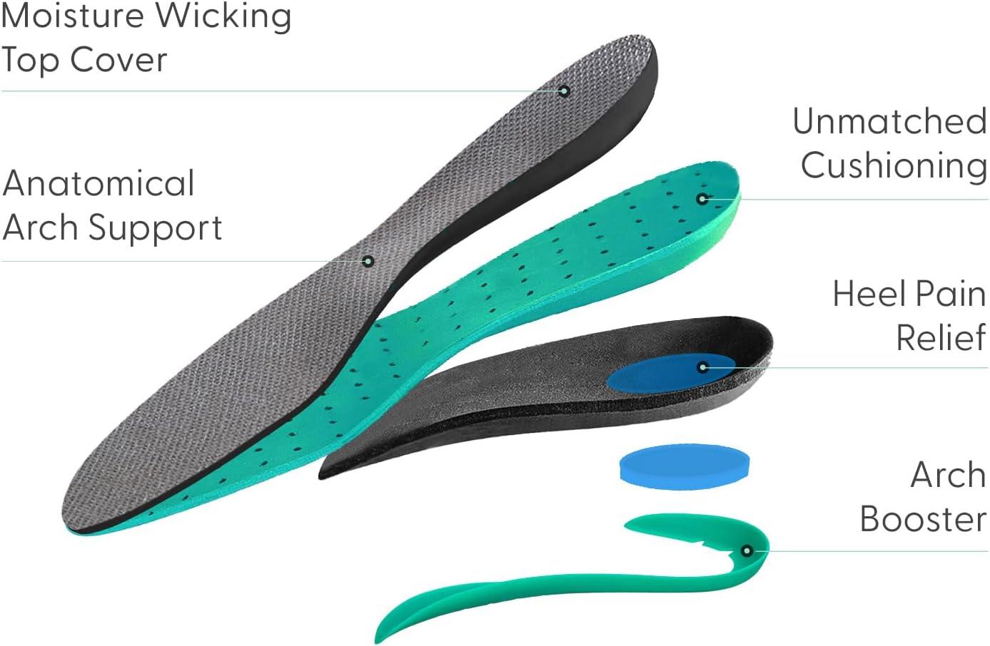 They are thoughtfully designed to support the natural arch of the foot. Plus, they come with an adjustable arch booster for extra support, if needed.